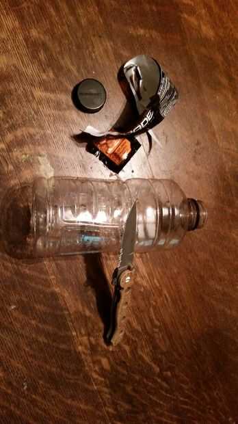 Sólo necesitas dos cosas: una botella de plástico y un cuchillo u otro instrumento afilado. Si estás sin un cuchillo, hacer una escama lítico agudo chasquido de dos rocas juntos. Botellas como estas, lamentablemente, se pueden encontrar ahí al lado de carreteras y, lamentablemente, incluso flotar por los ríos. Hará a cualquier botella de plástico, aunque yo prefiero el tipo que se muestra aquí, con crestas en el hombro.