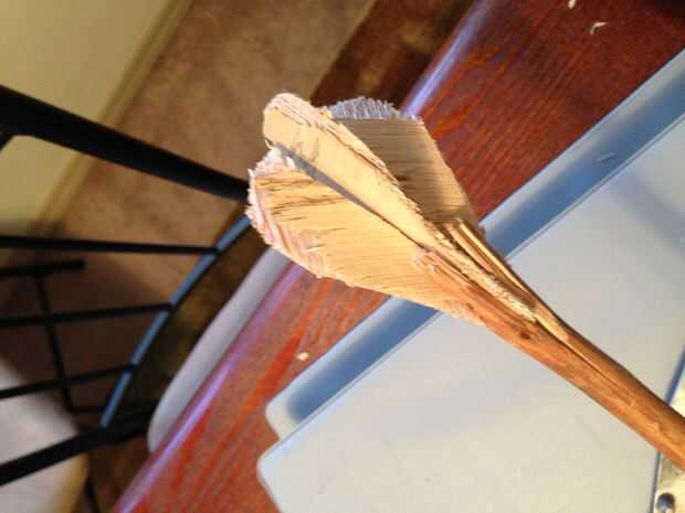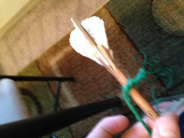 Luego tomó mi pieza de madera recta y comenzó azotar uno de los clavos en el extremo delgado del extremo puntiagudo palo hacia fuera. Me aseguré de que esta parte fue muy apretada, que esto es también lo que tengo mi sapp para. Una vez que había azotado y mitad enganchado y callejón había anudada a mi hilo, separó sapp árbol todo este conjunto. Luego usé el encendedor para calentar la savia por lo que pude extender el sapp en el hilo. El sapp actuó culo un epoxy con la lana es la fibra de trabajo. Esta hecha de una pieza muy fuerte que no romper o deslizar en el palo durante el impacto. Una vez que fue hecho comencé agregando trayendo al extremo posterior de la flecha así que volaría directamente. Empecé por cortar 4 ranuras en el extremo posterior de la palanca, uno cada 90 grados. A partir de ahí hice un patrón en la pieza delgada de tablero de partícula con el cuchillo y cortar hacia fuera presionando muy duro con el cuchillo, estas piezas serían mis remeras. Hice una pluma sólido y dos plumas medio que cabrían en cada lado de la pluma del sólido. Presionado en su lugar por difusión libre de hendiduras, luego atacó muy bien encima de las ranuras. He atado medio enganches y terminó con un nudo final. Desde allí tomé mi otro clavo y lentamente lo clavó en el lado de la flecha, justo en frente de la recuperación. He utilizado esto como mi nock. Asegúrese de utilizar un pequeño clavo y clavo lentamente para no partir la madera. Tuve la suerte de encontrar este clavo en un pedazo de madera en la playa.