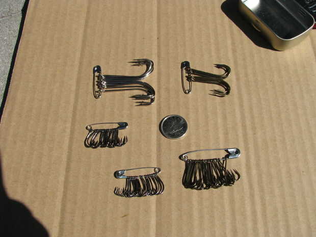 -Llevar ganchos alrededor de 75, con 80% de ellos siendo pequeños ganchos. Ganchos pequeños son mejores que ganchos grandes porque todos los peces pueden quedar atrapados en un pequeño gancho pero sólo grandes peces pueden quedar atrapados en un garfio grande.