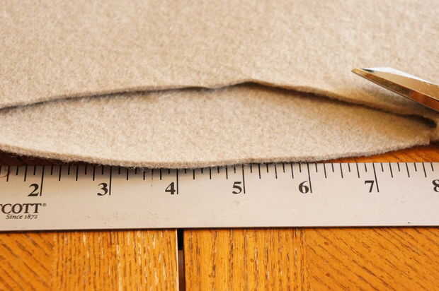 Luego marque una línea de cuello de 4 pulgadas como se muestra y corte el cuello con moderación ya que se ajuste más adelante.