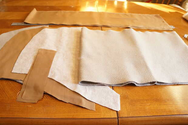 Corte 2 pedazos de lana para los bolsillos como se muestra. Usted puede cortar uno pero 2 hace mucho más cálido.
