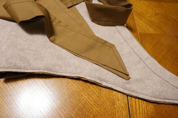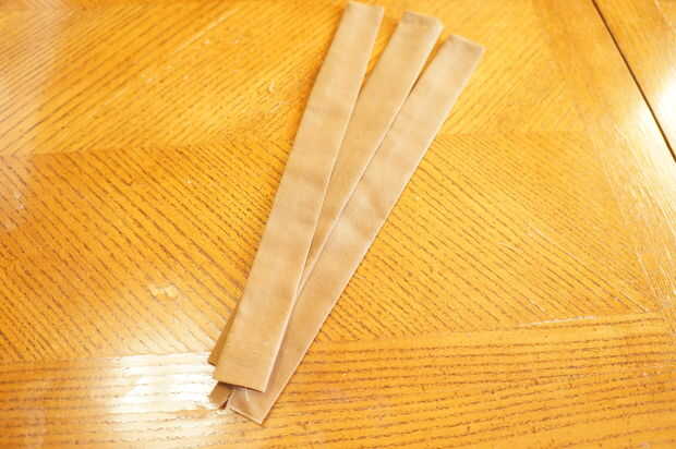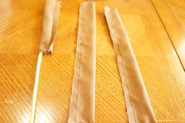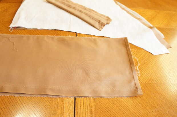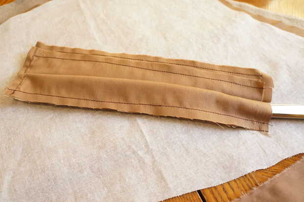 Presione a la tela de la correa como se muestra y doblar sobre longitudinalmente y prensa, luego coser el lado abierto como se muestra.