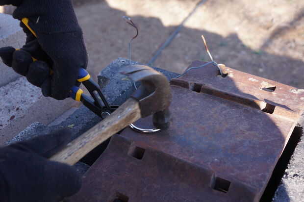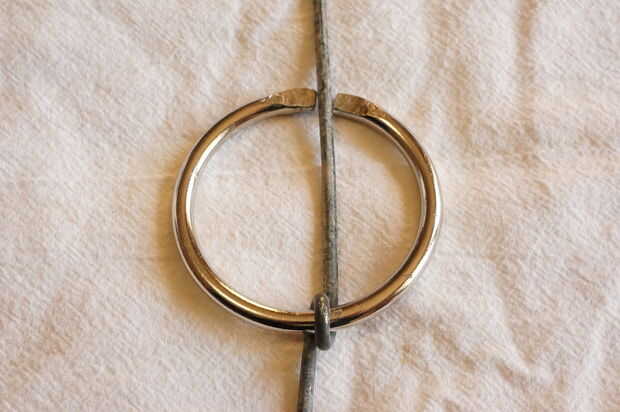 Mi marido cogió algunas herramientas y había hecha la aguja antes de que pude tomar fotos de cómo lo hizo. Creo que os pueden hacer una idea mirando el diseño simple. El pin de manta funciona muy bien aunque creo que debería haber utilizado un alambre más pequeño para sea más funcional. Él utilizó un cable de la planta de tomate de la jaula. Un pin de manta resulta útil para convertir una manta en un saco de dormir (3-4 necesario) o para cerrar la abertura de la manta para mantener el calor.