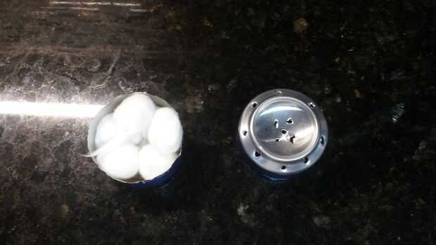 Tomar las bolas de algodón la tienes y poner unos 5 o 6 en la lata que no tiene los agujeros en ella.