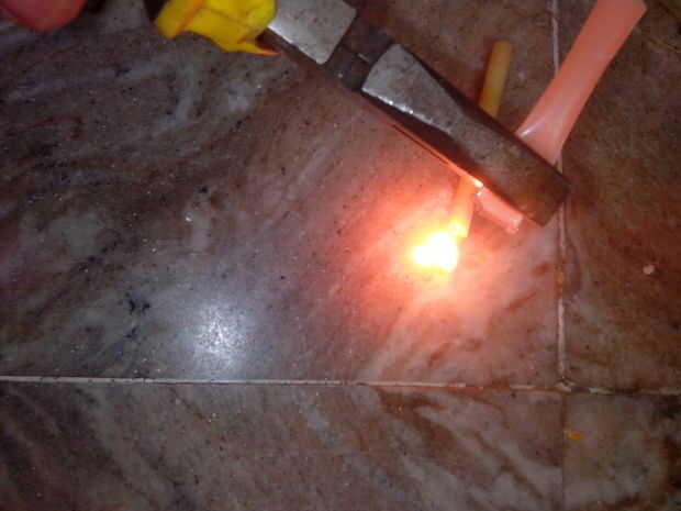 Paso 2: Usando A alicates, manténgalo "un extremo como se muestra y traer el extremo bajo llama usando fósforo por lo que puede derretir.