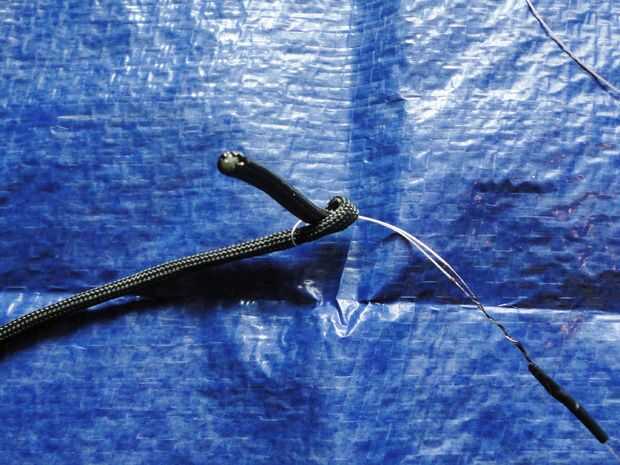 Cable para, nos encanta la materia partícula 7 strand 550 para un cable adecuado. El lazo más grande que hicimos puede utilizarse para asegurar la trampa a una clavija de tierra o un pequeño árbol pasando el la soga a través del bucle 2.