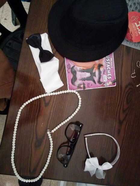 * todos los accesorios que desee (trate de elegir las cosas que se pegan hacia fuera es decir: pajarita, gafas famosas, pendientes grandes, bigotes falsos). No intente pila a muchos, 2-4 debería funcionar.