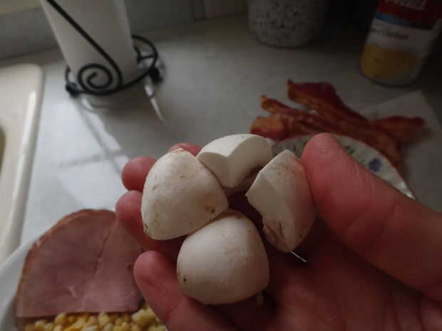 Limpia los champiñones con una toalla de papel húmeda y lo cuarto.