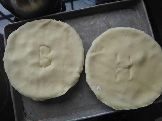 Me gusta marcar los pies para saber qué sabor cada uno tiene dentro. Corté una B en la empanada de bacon y una H en la torta de jamón.