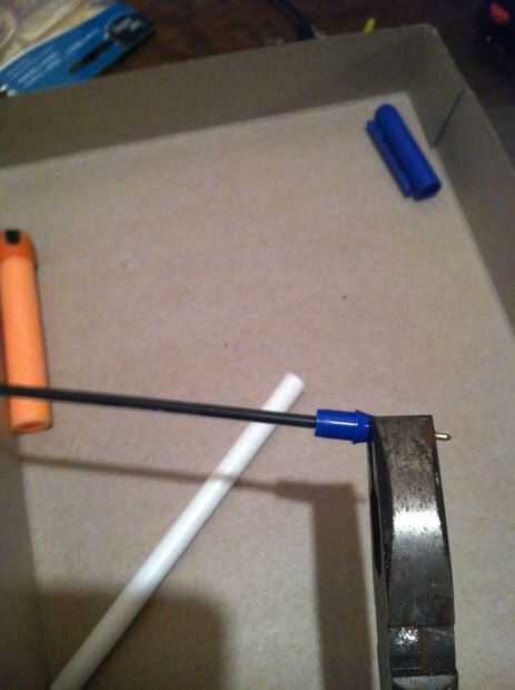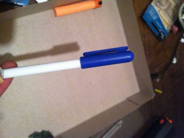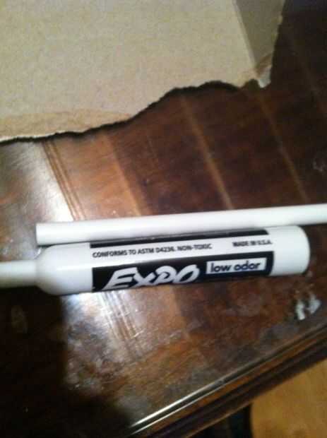Este paso es muy similar a la anterior, pero lo hace a un lápiz. Los alicates son una buena herramienta para esto. Una vez ha tirado aparte, todo lo que necesita es la carcasa de plástico. Colocar la cáscara en el marcador expo para que pueda ver cuánto extra pluma tienes. Cortar los restos.