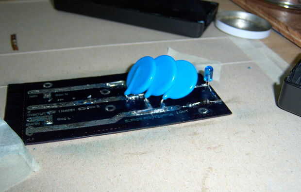 Según el circuito pueblan el PCB, las fotos son auto explicativas. Doblar las puntas de los componentes para acomodar el espacio dentro del recinto. Después de rellenar los componentes necesarios, colocar dentro de la caja y compruebe para asegurarse de que está trabajando.