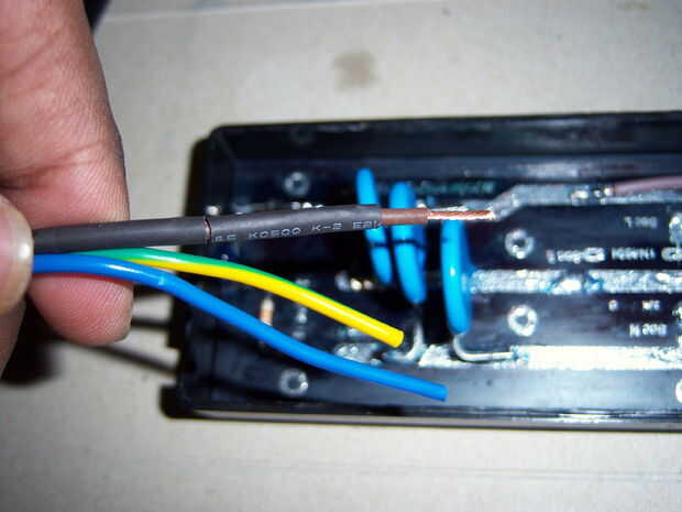 Tira del cable con el enchufe y el cable en lugares apropiados en la placa de la soldadura.