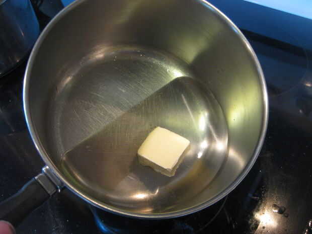 Medida 4 1/4 tazas de prefiere hornear la mezcla en el tazón grande y preparar para la transferencia de agua caliente