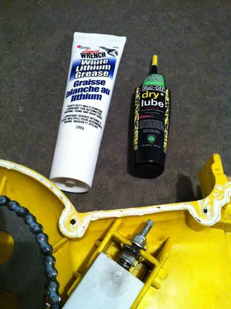 4. Usando lubricante seco o equivalente, lubrique la cadena, el pedal engranajes, engranajes de eje propulsor y titulares.
