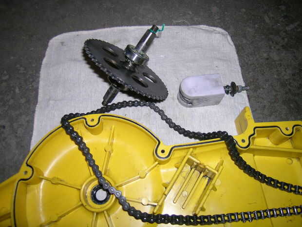 6. Limpiar la cadena y el eje de la hélice. Usé un cepillo de dientes mojado en Varsol y limpiar con un trapo.