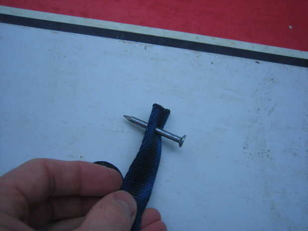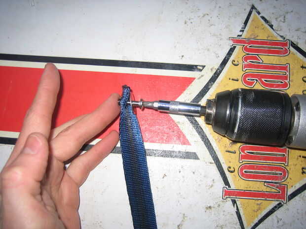 El tornillo a través de la cinta fue un poco más difícil que había pensado. Trabajé un sistema de poner un clavo a través de la cinta para iniciar toda y luego utilice el taladro para atornillar a través de la cinta.