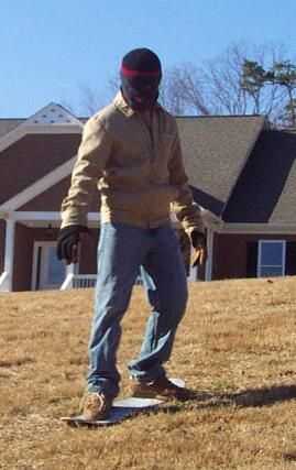 Así que mi vecino ocurrió esta brillante idea: agarrar una cubierta del patín y las colinas - literalmente - la cabeza y así nació la hierba surf.