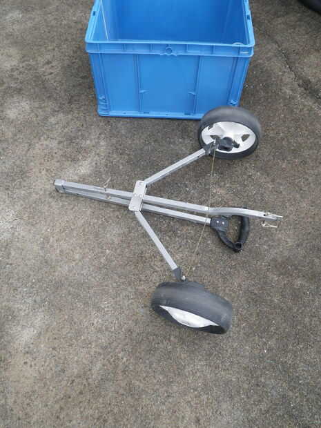 Desmontar el carro de golf quitar la bolsa cunas, correas etc. y corta o reducir según sea necesario para adaptarse a su cajón. El carro de golf que recibí tenía ángulo pivotes para las piernas de dos ruedas por lo que parecía un trípode cuando abrió. Que éstos de corte y formó un par de soportes planos para las piernas de la rueda girar en permitir el cajón para sentarse sobre la columna vertebral y dos piernas.