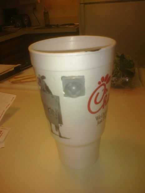 A medio camino a través de este proyecto decidí que quería un caso más de lujo que mi copa de espuma de poliestireno estándar. Target y Walmart tanto venden a este patito de goma que ha significado para evitar a niños golpear sus cabezas poco suaves en el surtidor de agua. Es de cinco dólares y tiene una tabla de surf! Espuma de poliestireno funciona mejor en un lugar al aire libre urbano mientras que algo como un patito es mejor adaptado a la casa. Piense en donde usted quiere poner esto antes de decidir sobre un caso de ocultamiento y protección.