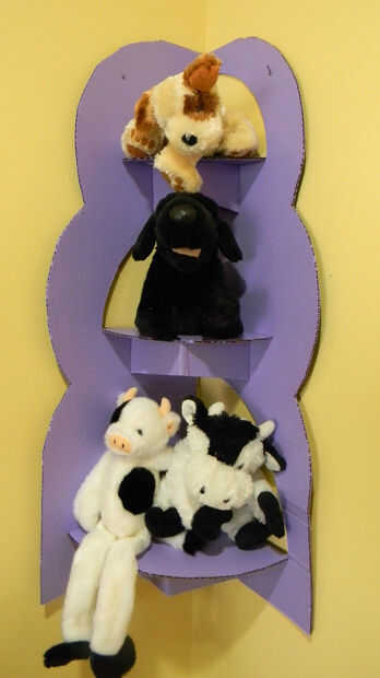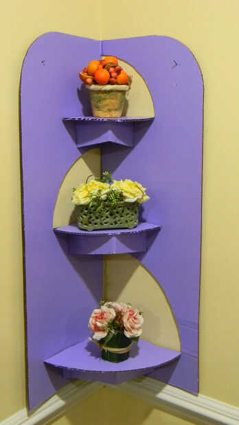 ¿Un estante de la esquina que es ligero y portátil que puede ser bajado y reutiliza en cualquier momento? Eso fue un reto, pensé, que con mucho gusto acepté. Me encanta el reciclaje y con este desafío en mente, sé qué usar. Tenemos un montón de tri-pliegues que mis hijos en secundaria. He guardado en el sótano, pensando que los utilizaré en el futuro. Hoy es el día perfecto!