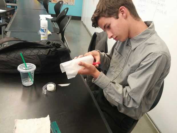 Utilice su pantalla para tapar el agujero y coser en la tela