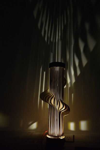 La lámpara de aumento es un proyecto de diseño de código abierto para ser descargado, modificado y construidos de contrachapado de chopo corte láser y alimentado por un circuito simple de arduino y LED.