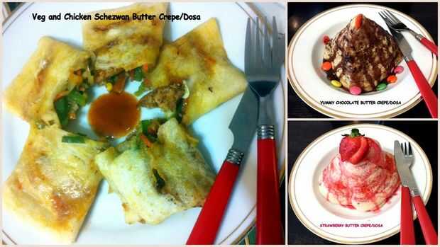 Si tienes niños en casa, simplemente amarán el Chocolate mantequilla Crepe y Crepe de mantequilla de fresa. Crepes son llamados Dosas en la India. Estos 4 crepes son famosos como comida de la calle en la India y todo el mundo come con entusiasmo y gran interés. Si alguna vez tienes la oportunidad de visitar India, fuertemente le sugerimos que pruebe estos. Yummy!!!