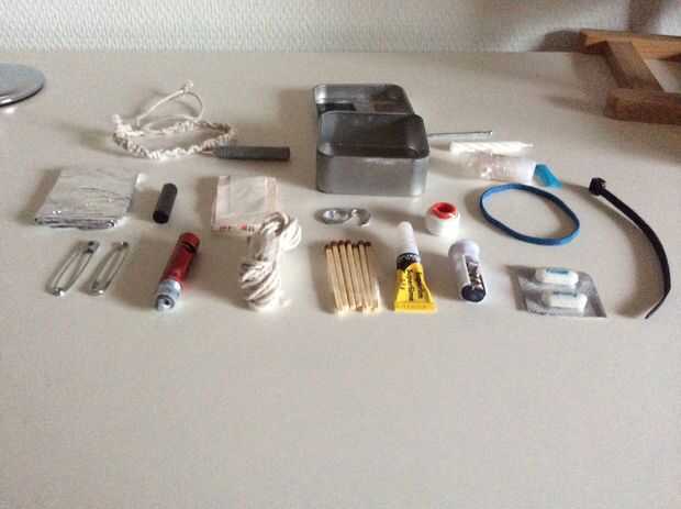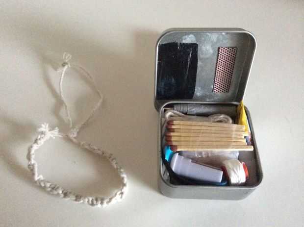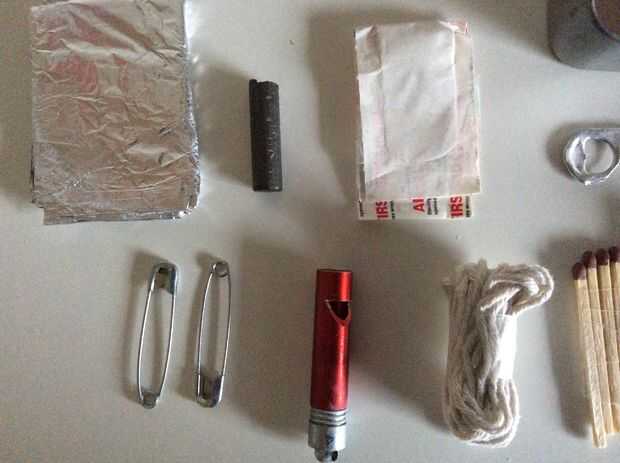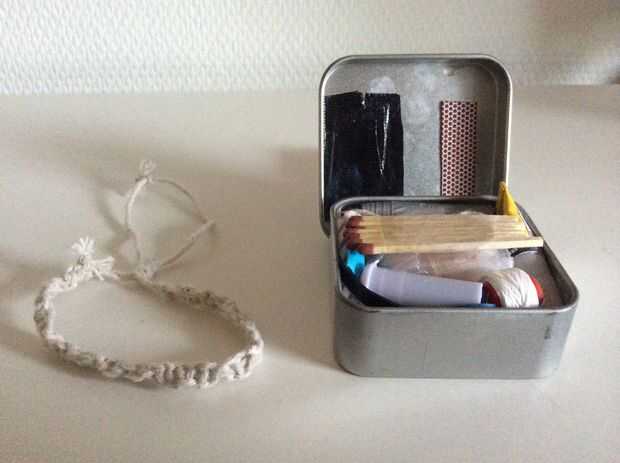 This is my altoids survival kit.Cuenta con:1. papel2. lápiz3. velas de cumpleaños4. té vela5. navaja de bolsillo6. la aguja con hilo7. el espejo8. la luz9. kit de pesca10. la pelusa11. bolsa de piel de topo, aspirina y pilas para la luz12. el silbido