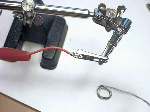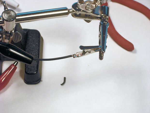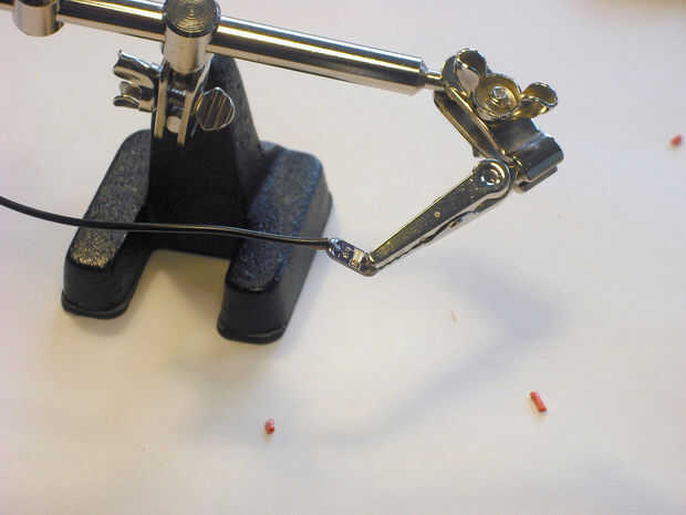 Otra vez, después de soldar el polo positivo, recorte el exceso filamentos de la parte inferior.