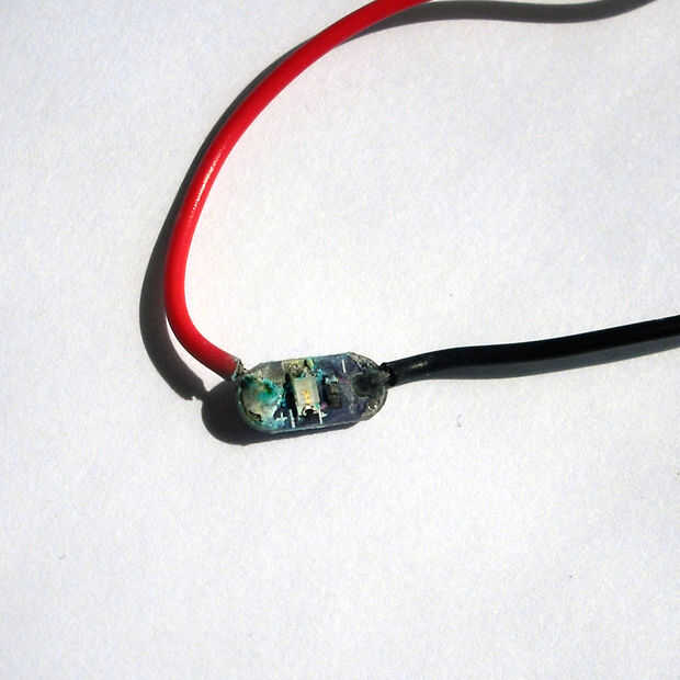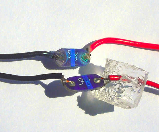 Después de 80 horas de exposición de los dispositivos en el agua en funcionamiento, la claridad del agua ha cambiado de claro a un color azul claro. El dispositivo unencapsulated fallado bajo operación. Sobre una inspección más cercana de los dos LED, el LED sin protección muestra una degradación significativa y a la corrosión de los electrodos hacia el fracaso del dispositivo LED. Sin embargo, cuando se quita el PDMS del LED protegido, se aprecia que hay poco o ningún daño a los electrodos. El PDMS había protegido LED todavía muestra funcionalidad completa después de la exposición misma al agua.