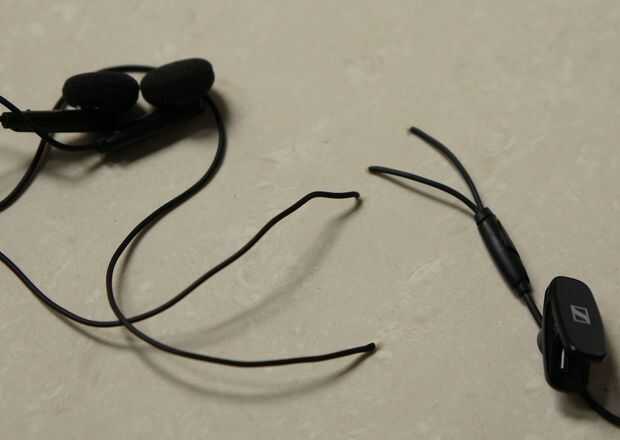 Comienza por cortar los cables del auricular. Este es un paso muy importante y usted debe hacer esto incluso si usted no ha tenido ningún Jabra Clipper en su posesión. Proporciona la presión necesaria para completar el proyecto, ya que no hay ninguna manera de dar marcha atrás ahora!