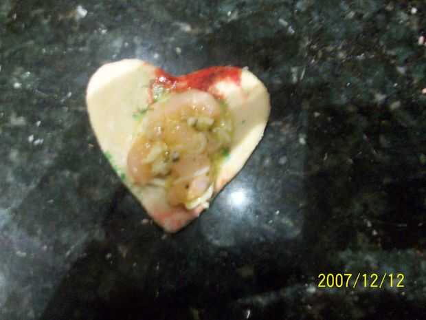 Utilice una pequeña cuchara a cuchara una pequeña cantidad en el medio y hacer el palillo del em juntos por agua alrededor de los bordes y empujando hacia abajo en ambos lados con un tenedor... Este es un buen sello y su bonito.
