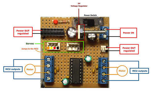 Estoy trabajando en un pequeño robot que puede ser controlado por un Arduino usando comunicaciones inalámbricas. Pero fui por el número de cables desde el Arduino y protoboard. Así que decidí reducir el número de alambres por hacer mi propio tablero