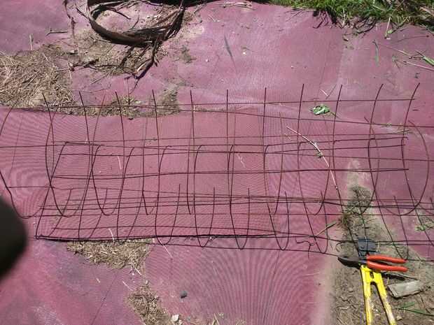 I malla de este paso cortamos acero a la longitud que necesitamos rodear nuestra planta. Para saber cuánto necesita que usted tendrá que resolver su circunferencia C=(Dπ). He decidido hacer mi jaula alrededor de 14" de diámetro. Tan 14 * 3.14 = 44"(redondeando cifras fácil).