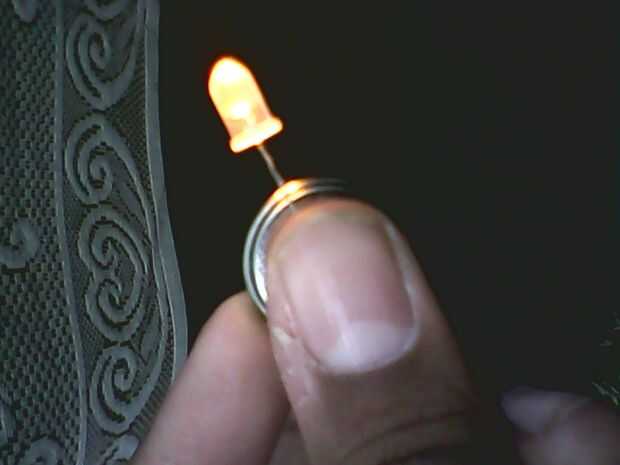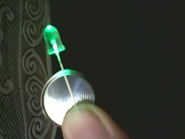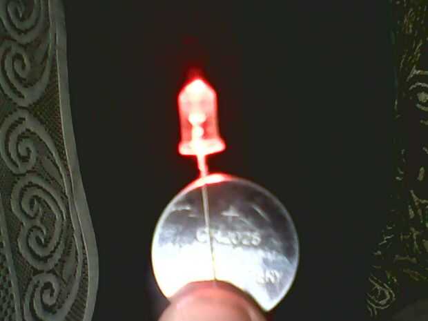Ahora fije los leds a las células de la moneda con el terminal más largo del lado conducido a positivo de la célula...