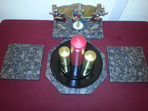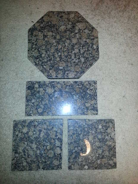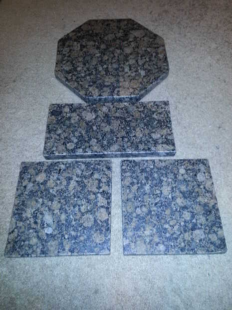 recientemente me encontré con una pequeña tienda de venta de restos de granito por un precio que era demasiado buena para dejarla pasar. Después de mirar a través de una amplia selección de piezas, encontré uno le gustaba y decidió hacer un Lazy Susan y hornillos para nuestra mesa de la cocina. Este Instructable cubre cómo tomar la pieza remanente grande de granito y hacer estos artículos. La ventaja en el uso del granito para estos artículos es que es extremadamente durable, se ve muy bien y es bastante fácil de trabajar. Estos también podrían hacer agradable pero bajo presupuesto Navidad regalo para alguien.