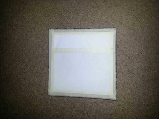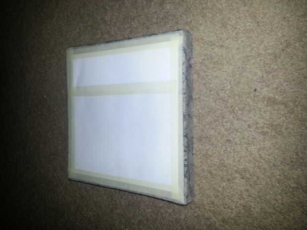 Después de el sellador de granito en seco durante unos días, me trasladé al sellador acrílico. El sellador acrílico se utiliza únicamente para mejorar el aspecto de los bordes y fondo. No quiero conseguir cualquier sellador acrílico en la superficie superior brillante puesto que ya era brillante y estará expuesto a alimento, calor, etc.. Es donde la cinta adhesiva y papel. Yo cuidadosamente enmascarados fuera de la superficie superior para evitar el exceso de spray penetre en él. Una cosa importante a notar aquí es que no quería que enmascare la esquina redondeada lija de antes. Si lo hice yo, tendría un diverso color que el borde y la parte superior, una vez que el sellador se rocía. Utilice el cuchillo para cortar la cinta adhesiva según sea necesario para cubrir la parte superior entera pero no las esquinas. Después de que uno tiene la superficie enmascarada apagado, aplique el sellador de acrílico a los lados y la parte inferior según las instrucciones en la lata. Utilizado una capa porque mi sellador encendió bastante gruesa, pero uno puede necesitar más dependiendo el sellador utilizado. Al final, el borde rociado debe tener un color parecido a la superficie en lugar de la apariencia terrosa de cuando uno comenzó.