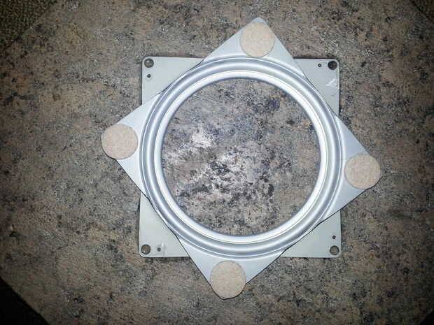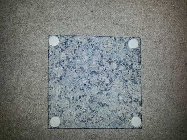 Por último, aplique de fieltro a las esquinas de las piezas de granito y los Lazy Susan. El propósito de las almohadillas de fieltro es prevenir cualquier arañazos en la superficie del granito está sentado así que no escatimes en cualquiera de ellos. Son baratos, así que en caso de duda, puse un par de extras que pueden ser necesarios. El granito debe ser precisión corte, por lo que es más probabilidad perfectamente plana. Eso significa que no tiene que preocuparse es oscilante (cursi valga la redundancia) no importa cuantas de fieltro puso en él.