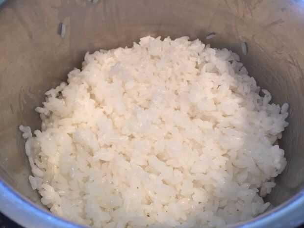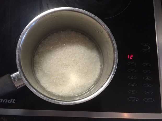El agua está hirviendo una vez el calor a bajo, tapa la olla con la tapa y deje que el cocinero de arroz durante unos 10 minutos.