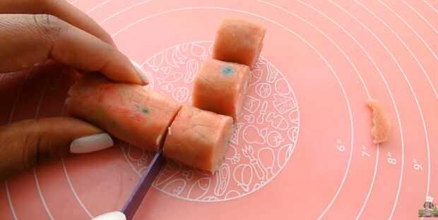 Una vez fuera de la nevera, desenrolle la masa de la torta y empiece a cortar. Rebanadas deben ser cerca de 1 pulgada de altura. Alinee el registro con la rodaja anterior para asegurarse de que todas las piezas son más o menos la misma altura.