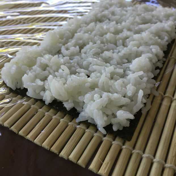Coloque una hoja de plástico sobre su máquina de sushi de bambú.