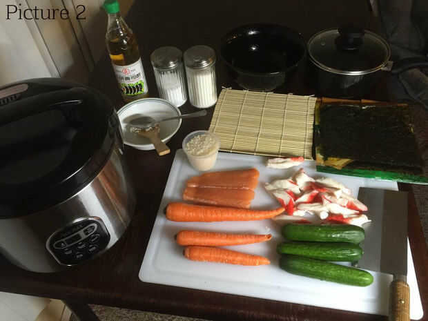 Lo que tienes que preparar para hacer 6 rollos de sushi (ver imagen 2):