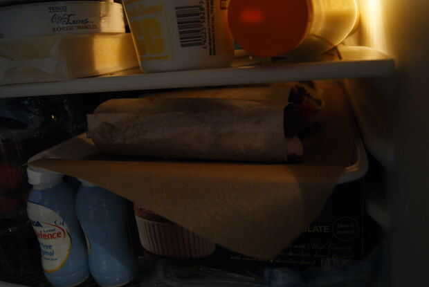 Una vez que el chocolate se haya endurecido, tome el sushi de la nevera y poner sobre una tabla para picar.