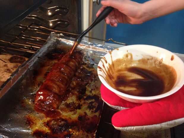 Comienza unos 10 minutos en cocinar pincel del esmalte sobre la superficie de la panceta. Gire y acondicione sobre cada 10 - 15 minutos, como le parezca. Además de agregar sabor glaseado le impedirá llegar a secar.