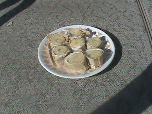 Rollos de sándwich de plátano son muy fáciles de hacer. Estrictamente conocimientos no se requieren. Simplemente aplanar las rebanadas de pan. Con su extensión de cacahuate favoritos y enrollar las rebanadas de pan con un plátano pelado. Luego cortar