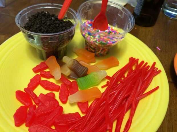 Aquí está una lista parcial de los muchos dulces y aderezos en la mesa para experimentar con: