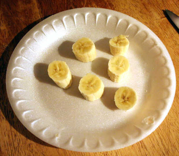 Cortar un plátano en rodajas gruesas. Rebanar el plátano 1 pulgada rodajas es ideal.