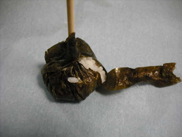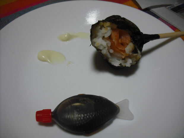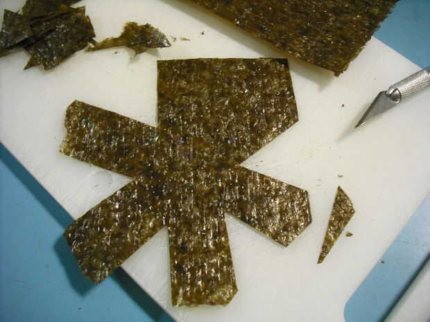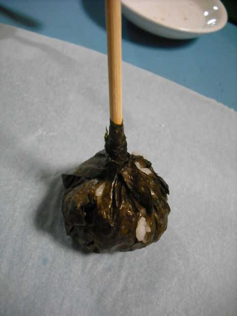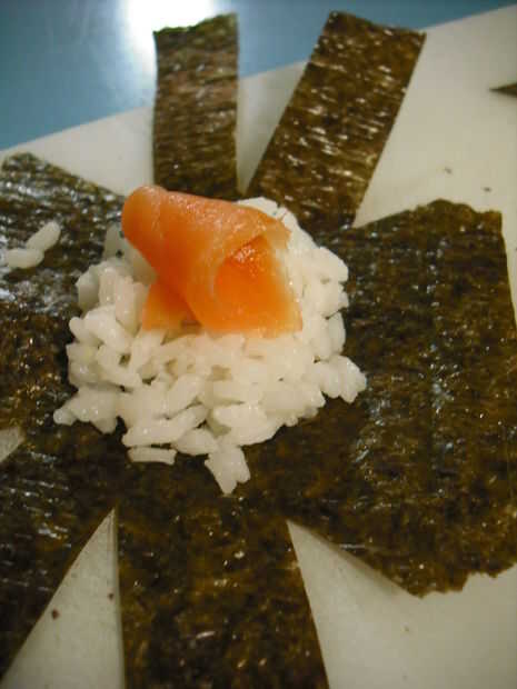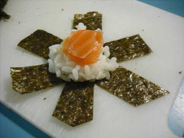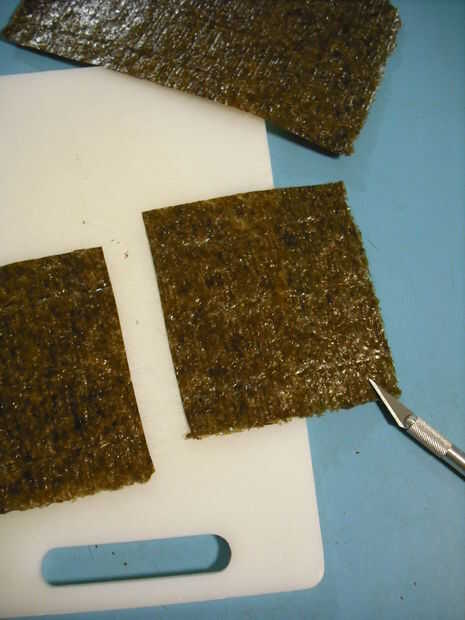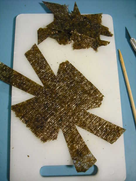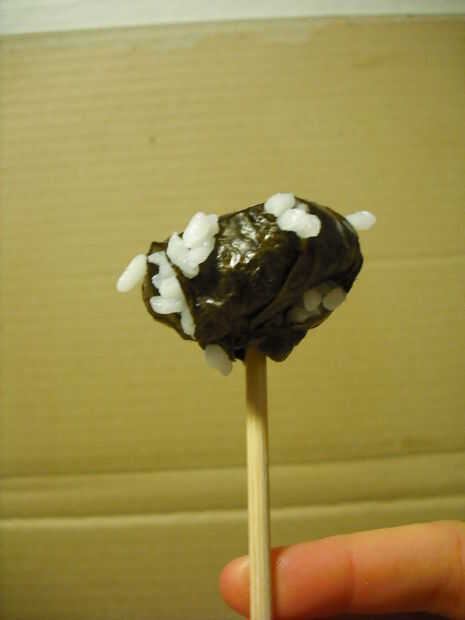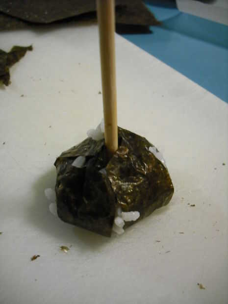 4 - envolver con cuidado! la hoja de alga debe ser humedecido un poco antes de que se adhieren a las cosas. No se pegan inmediatamente pero si mantenerla, el agua será absorbido y que debe contener. Más tarde no pude conseguirlo del palo.