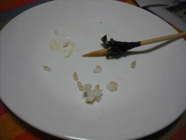 1 - primer intento: las longitudes eran muy cortas y apenas envuelto alrededor del relleno, no el palo.