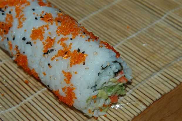 y aquí tenemos algunos Bejeweled tobiko nuestro rollo sabroso.